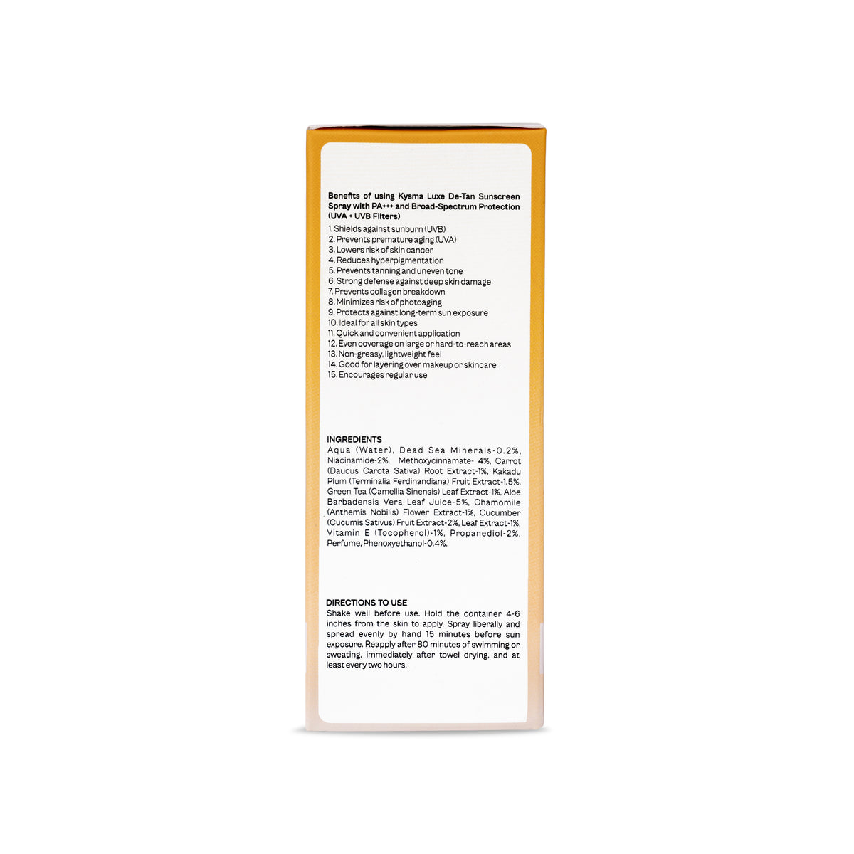 Kysma Luxe Sunscreen Spray SPF 50 PA+++ | De-Tan Fluid Spray with UVA/UVB & Blue Light Protection | Sweat Resistant, Zero Alcohol | Quick Absorbing, No White Cast, For All Skin Types | Unisex | 50ml